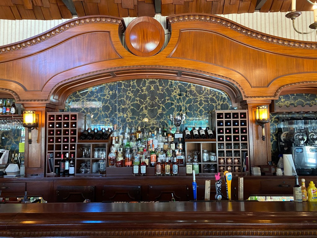 The “showpiece” of the establishment is most definitely the mahogany bar that stands prominently to the right of the entrance, which is the actual location of the original wagon shop. The bar itself was originally from the President’s Walk Bar from downtown Chicago (McCormick Place), and was purchased in a closed bid auction after being salvaged from a fire.